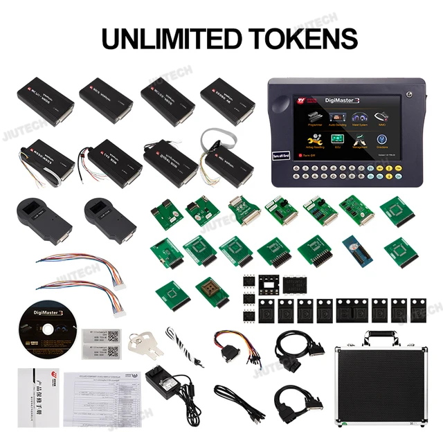 - L'original Digimaster 3, également appelé Digimaster III ou simplement D3, fonctionne avec divers types d'adaptateurs, vous permettant de réaliser facilement la correction du compteur kilométrique, le décodage audio, la réinitialisation des airbags, la réinitialisation de l'ECU moteur, l'IMMO, la programmation de clés pour Benz & BMW, etc.